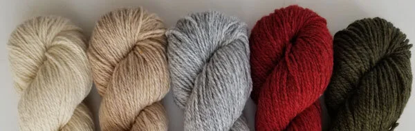 Biches et Buches, the yarn that comes to us from Scotland via France, has sent us a trunk show! We have five of their items plus one of ours knit in their le gros lambswool. This is an aran weight yarn of 100% lambswool. The suggested needle size is 7 so you know this will knit up quickly!