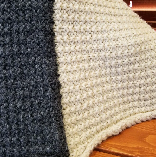 The trunk show from this small, family-owned company includes a shawl collared cardigan, two cozy textured rectangular wraps, an oversized colorwork pullover, and a cardigan that is more like a jacket with a loose fit and pockets on the front.