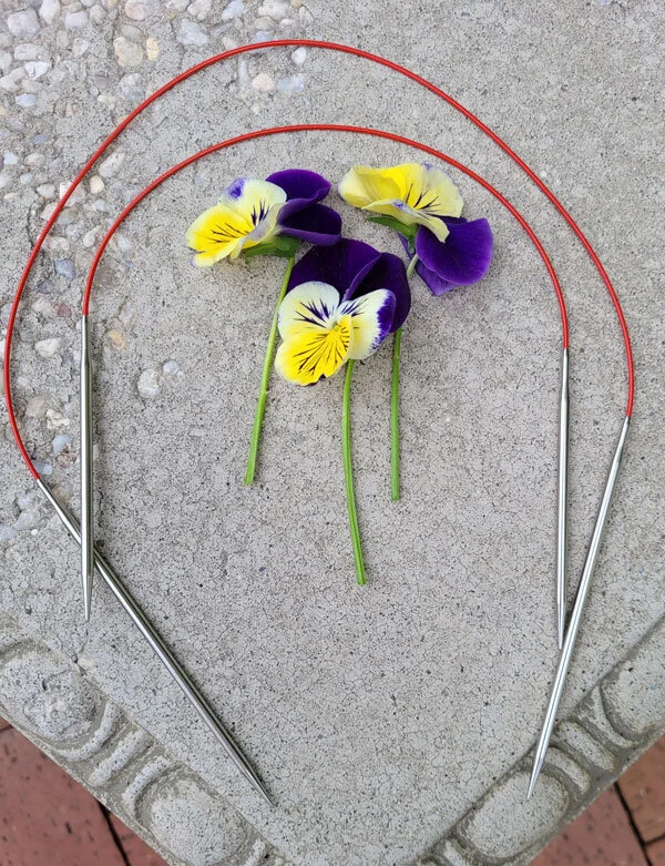 The vast majority of us knit with circular needles. There are definite advantages to using them! One obvious advantage is that the tips are connected by a cable. Therefore, we will always have both of them and won’t lose one! A less obvious but more important advantage is that the weight of our knitting project is mostly on the cable. This lessens the work that our hands and forearms need to do to support that weight which, in turn, lessens the chance for injury.