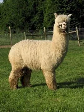 Huacaya alpacas make up at least 90% of the worldwide alpaca population. They’re the ones people are most familiar with and tend to look like teddy bears. Their fiber is curly and has lots of crimp. When you see a label with the general term ‘alpaca’ on it, it will be Huacaya.