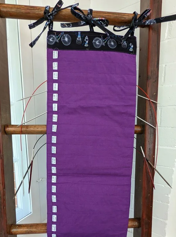 Merely thread your needle through the appropriate slot for its size and you have a nice tidy way to store your needles with this Hanging Circular Needle organizer