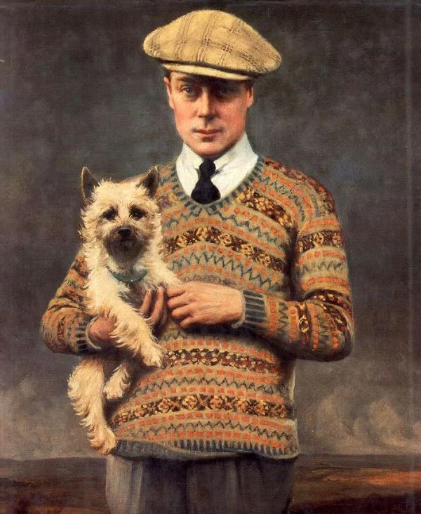 The basic sweater design is based on Ganseys but colors and small patterns were used instead of texture. Fair Isle garments started out as hats, socks, and gloves then grew to include sweaters which were worn by men until the 1920s when women began to wear them. They became immensely popular in the 1920s when Edward, Prince of Wales wore one while golfing.