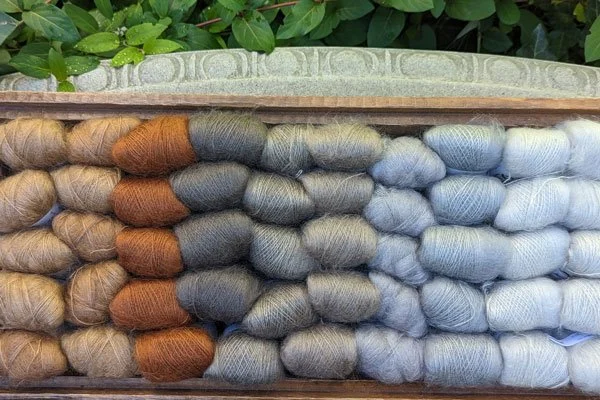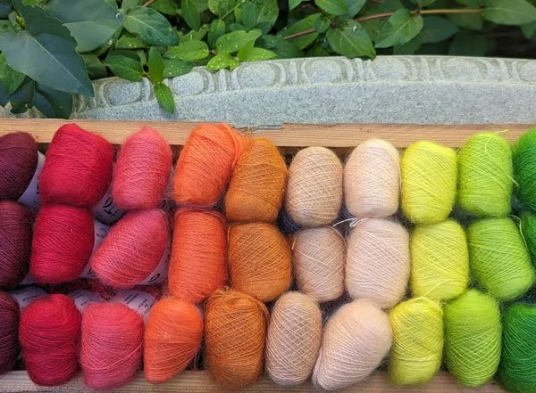 We found this gorgeously vibrant yarn in Chicago this past summer. The reason the colors are so magnificent is that it has 40% silk blended with the mohair. Usually there is less silk blended with mohair. We love all of our mohair yarns but there is something special about Sensai.