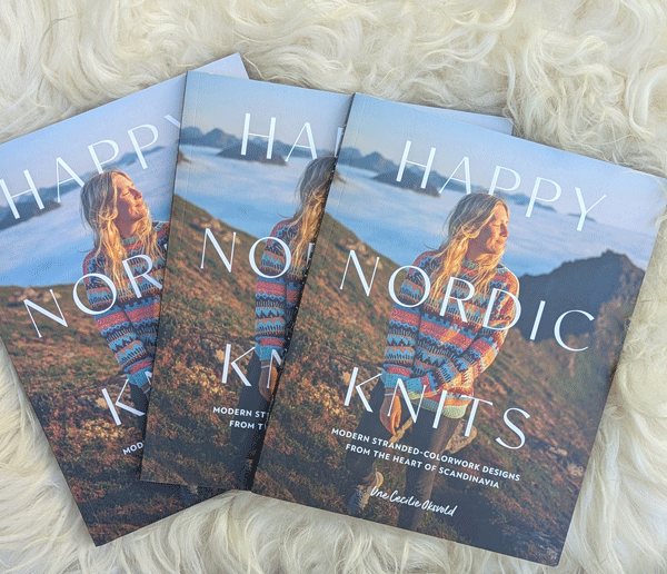 The book that we want to bring your attention to is Happy Nordic Knits by Une Cecilie Oksvold. This book is much more than knitting patterns. It’s a story of Une Cecilie’s life, her challenges with anxiety, and how knitting and being outside has been so valuable to her. There’s a personal story with each pattern and you’ll feel as if you’re getting to know her well. Une Cecilie talks about using color to create a feeling, perhaps of calm, joy, hope, even excitement! I’m going to take that into consideration when I choose color/s for my next project!