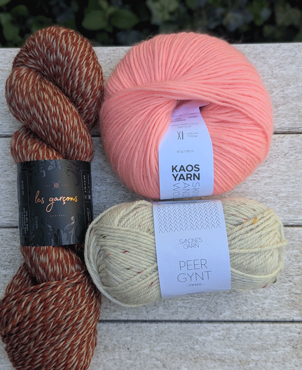 Les Garcons British DK, Kaos Yarns Skinny Andean Wool, Sandnes Garn Peer Gynt Tweed