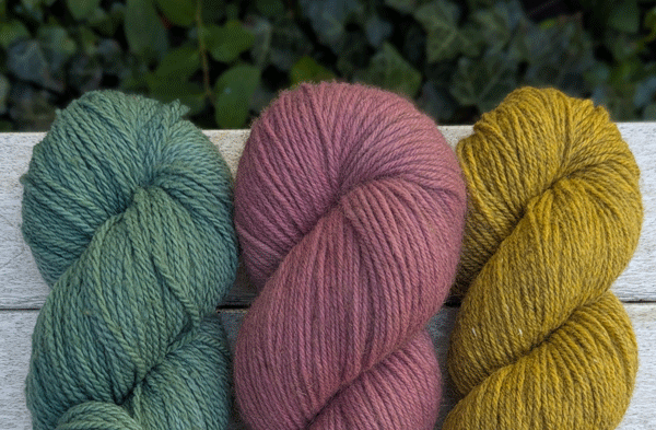 Left to right: Farmer’s Daughter Fibers Pishkun DK, Circus Tonic Merino Possum, Blacker Yarns Samite