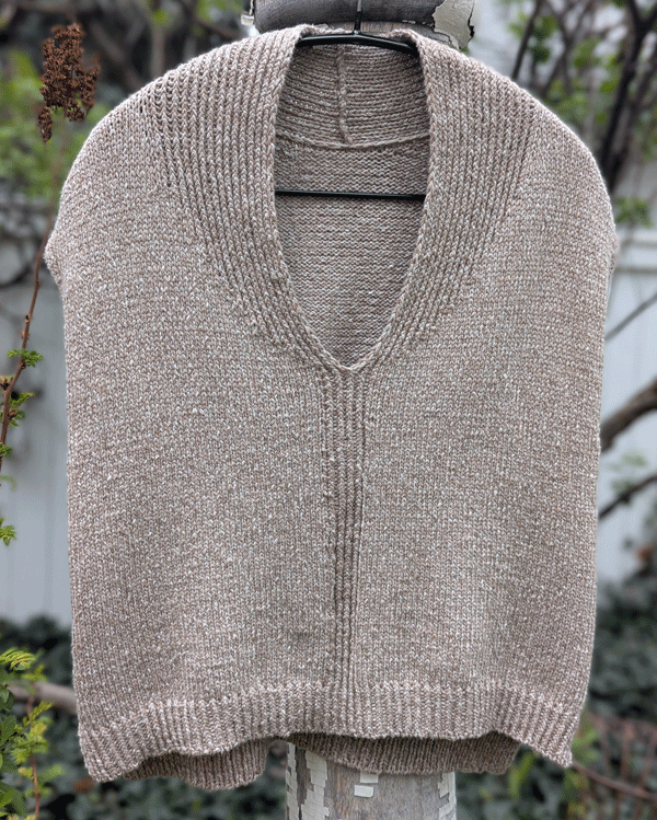 Today we’re going to focus on one vest/top, mentioned briefly in a recent post, that can be made with either of these yarns. I think this top deserves more attention!