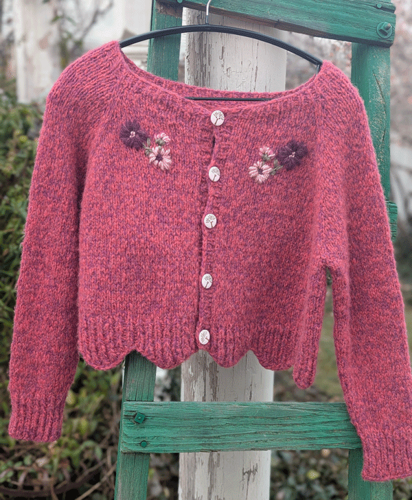 Maggie Cardigan designed by PetiteKnit and Variations Cowl No 1 designed by Tiff Neilan