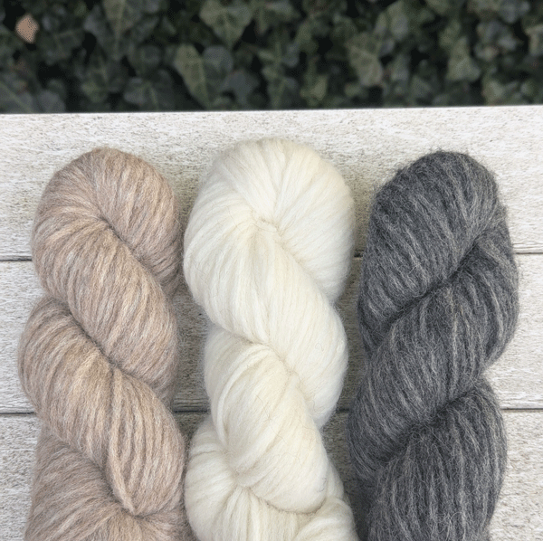 These colors of CaMaRose Midnatssol would be perfect for Miss Trudy’s Tortie! Three strands are used throughout; two darks and one light.