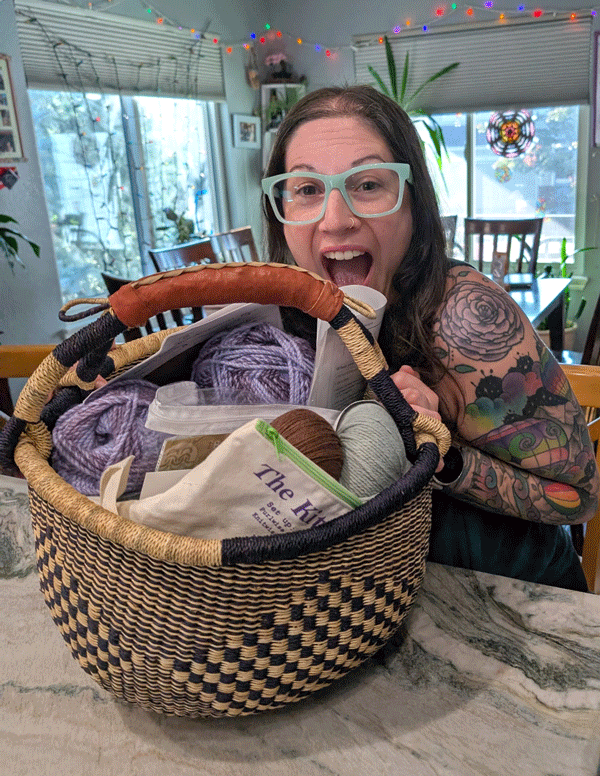 Meet our Hot August Knits Yarn Crawl Grand Prize winner Rachel Molieri from Highlands Ranch! She looks pretty happy with her basket of goodies!